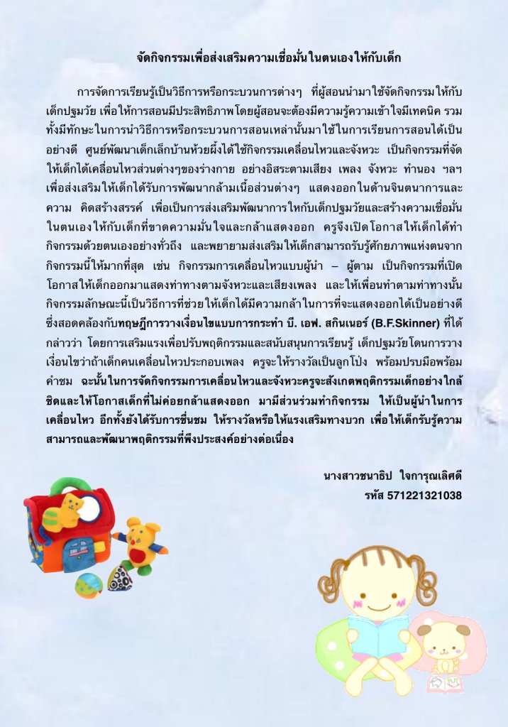 จัดกิจกรรมเพื่อส่งเสริมความเชื่อมั่นในตนเองให้กับเด็ก