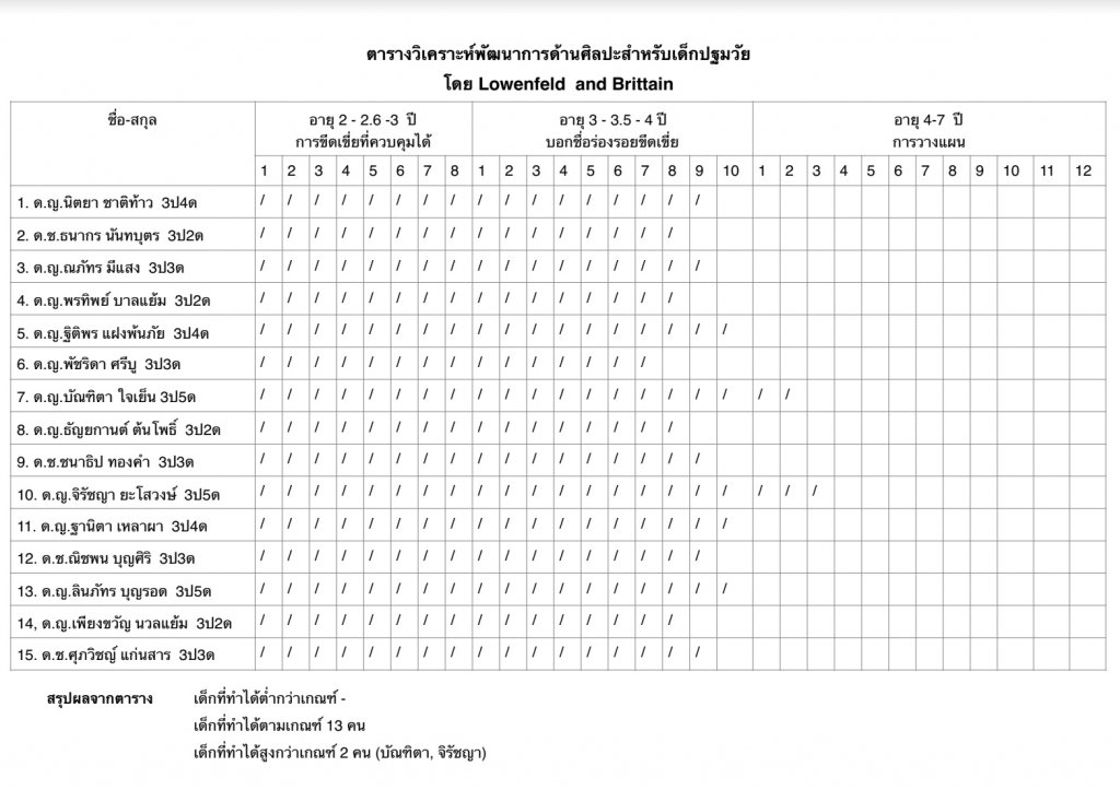 ตารางวิเคราะห์พัฒนาการด้านศิลปะสำหรับเด็กปฐมวัย