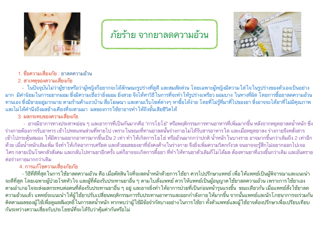 งานเดี่ยว ภัยร้ายจากยาลดความอ้วน