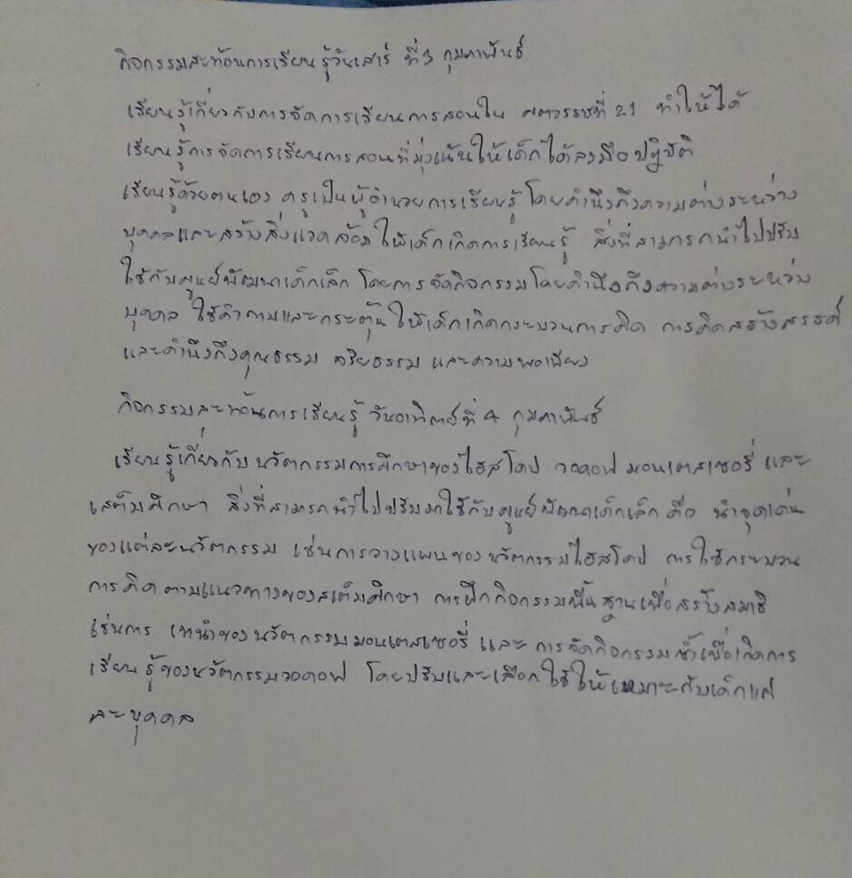สะท้อนการเรียนรู้3-4 กุมภาพันธ์ 61