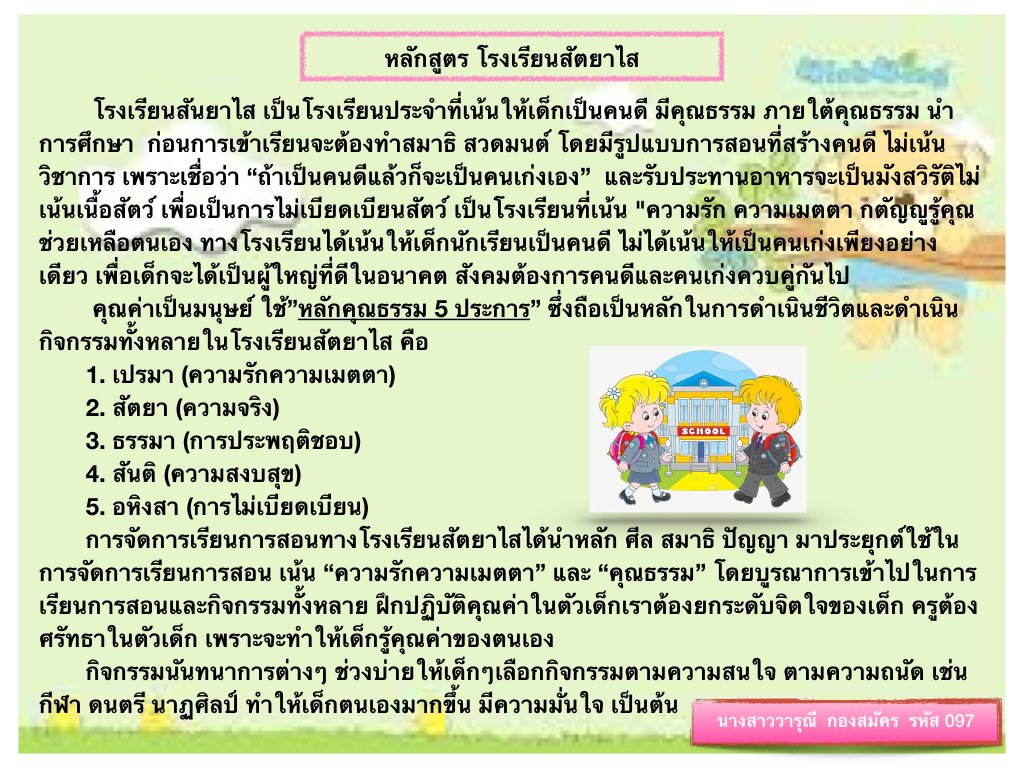 สรุปวิดีโอ หลักสูตรโรงเรียนสัตยาไส