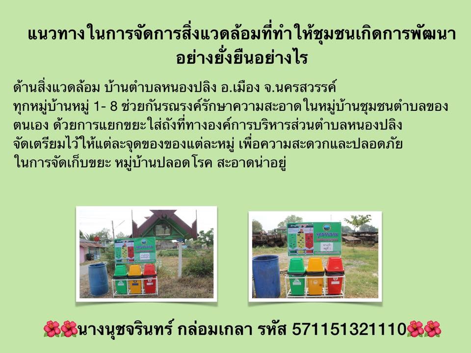 งานสัปดาห์11 ในชุมชนของท่านมีการจัดการสิ่งแวดล้อมอย่างไร(เลือกมา1อย่าง)