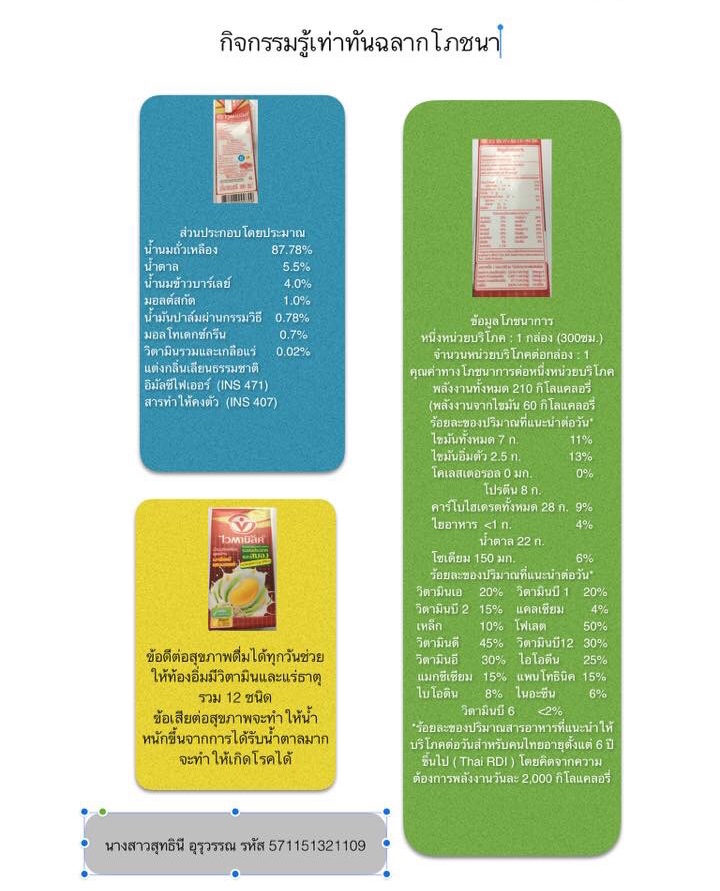 งานสัปดาห์ที่3กิจกรรม รู้เท่าทันฉลากโภชนาการ (เดี่ยว)