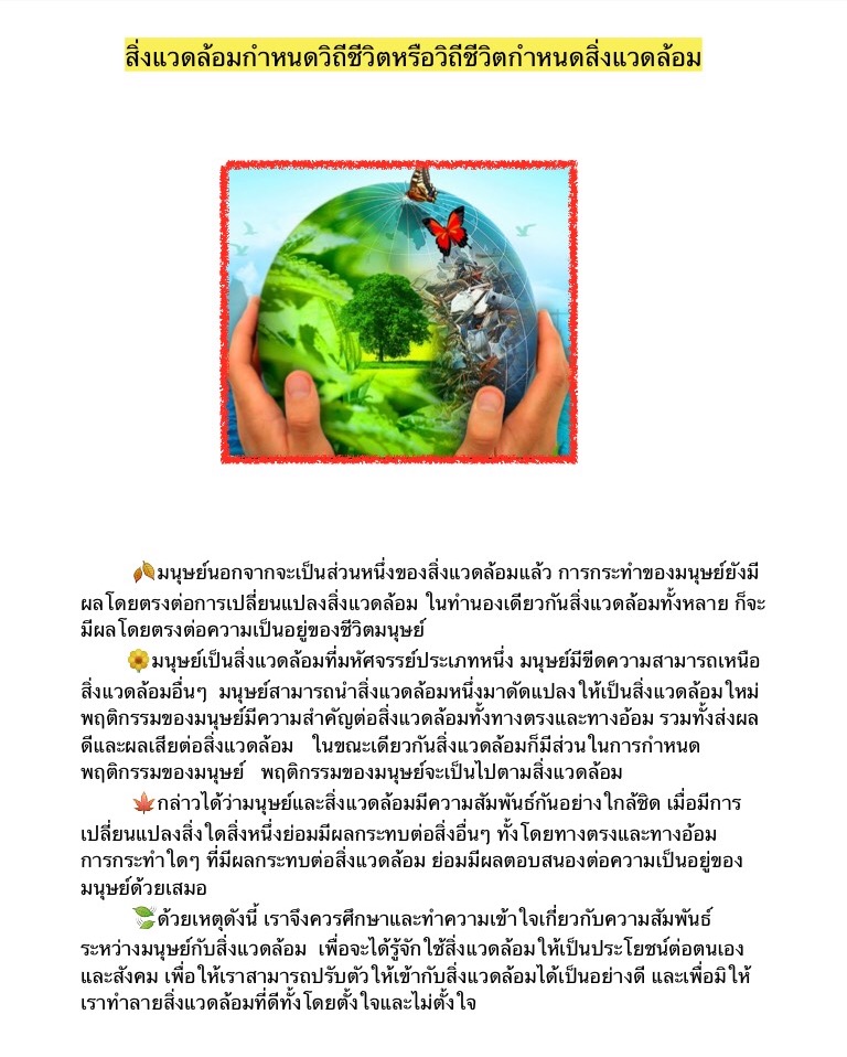 กำหนดวิถีชีวิตกำหนดสิ่งแวดล้อม