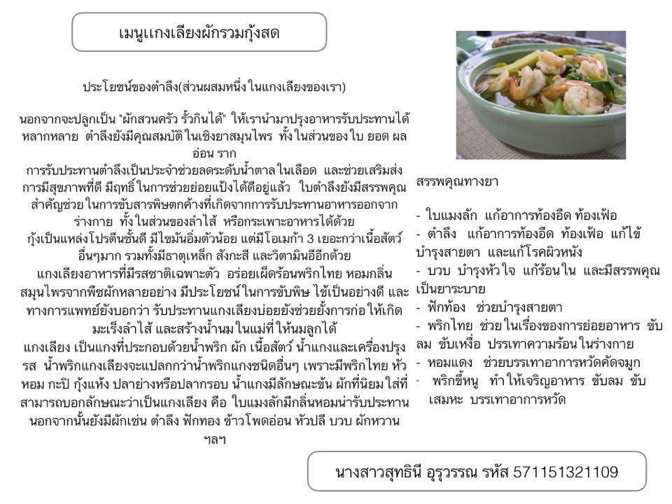 เมนูอาหารท่ีพัฒนาสมองและเน้นเศรษฐกิจพอเพียง (เดี่ยว)