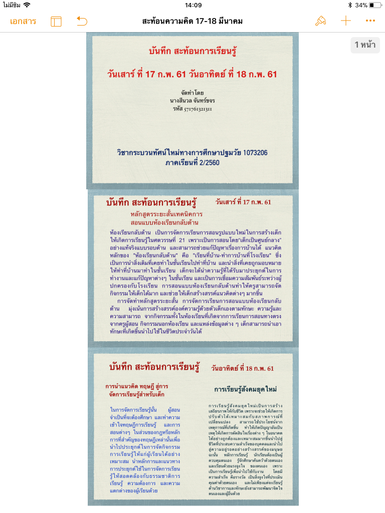 สะท้อนคิด 17-18 กุมภาพันธ์ 61