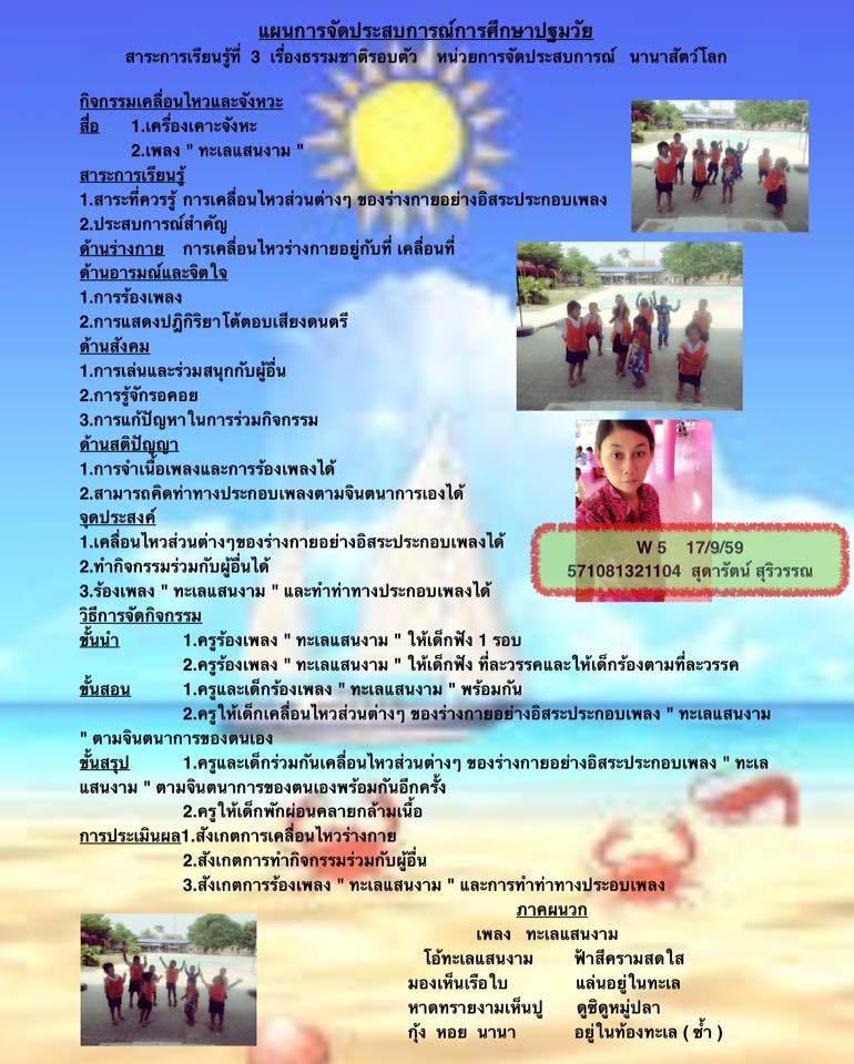 แผนการจัดประสบการณ์กิจกรรมเคลื่อนไหวและจังหวะ เพลง โอ้ทะเลแสนงาม