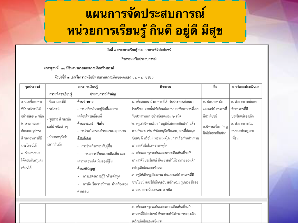 แผนการจัดประสบการณ์ (กิจกรรมเสริมประสบการณ์)