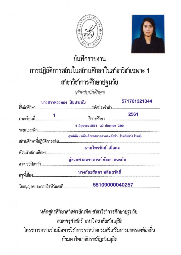หน้าปกบันทึกรายงานการปฎิบัติการสอนสถานศึกษา