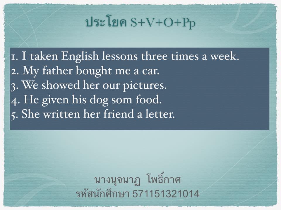 การแต่งประโยค S + V + O + Pp.