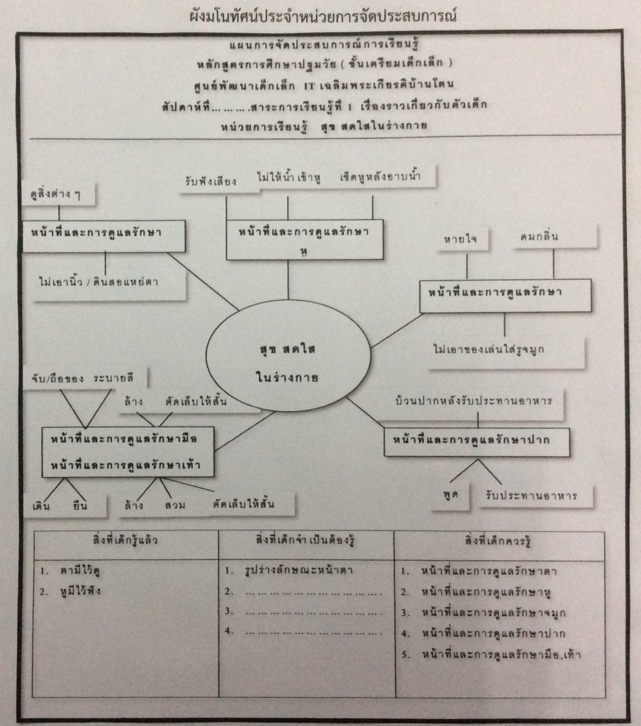 ผังมโนทัศน์ประจำหน่วยการเรียน หน่วย สุขสดใสในร่างกาย
