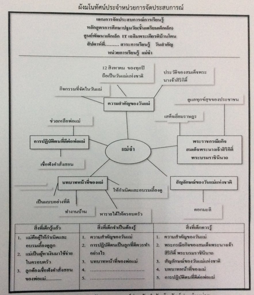 ผังมโนทัศน์ประจำหน่วยการเรียน หน่วย แม่จ๋า (วันแม่แห่งชาติ)