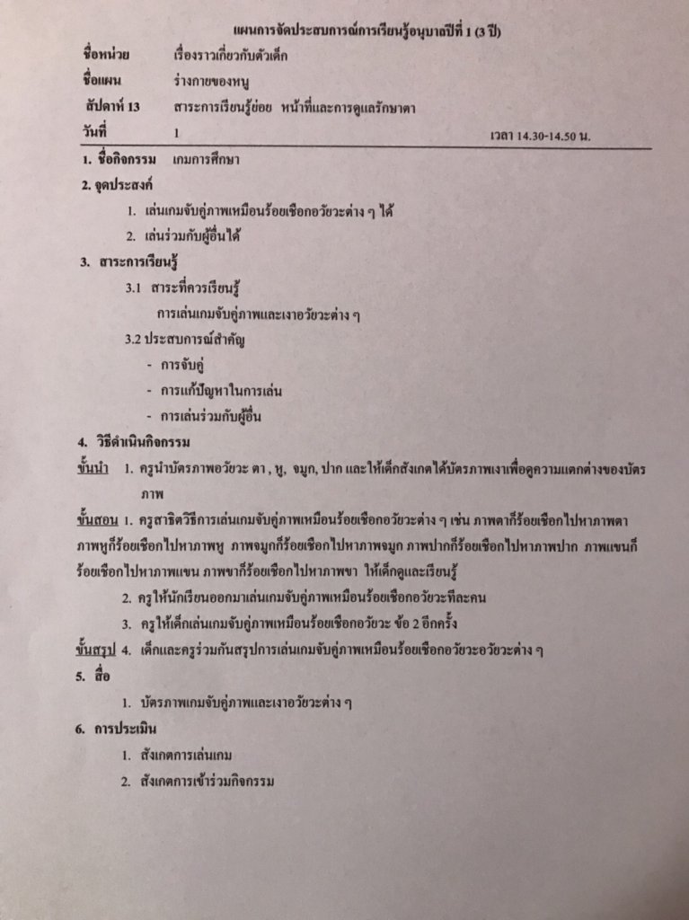 แผนการจัดประสบการณ์ กิจกรรมเกมการศึกษา