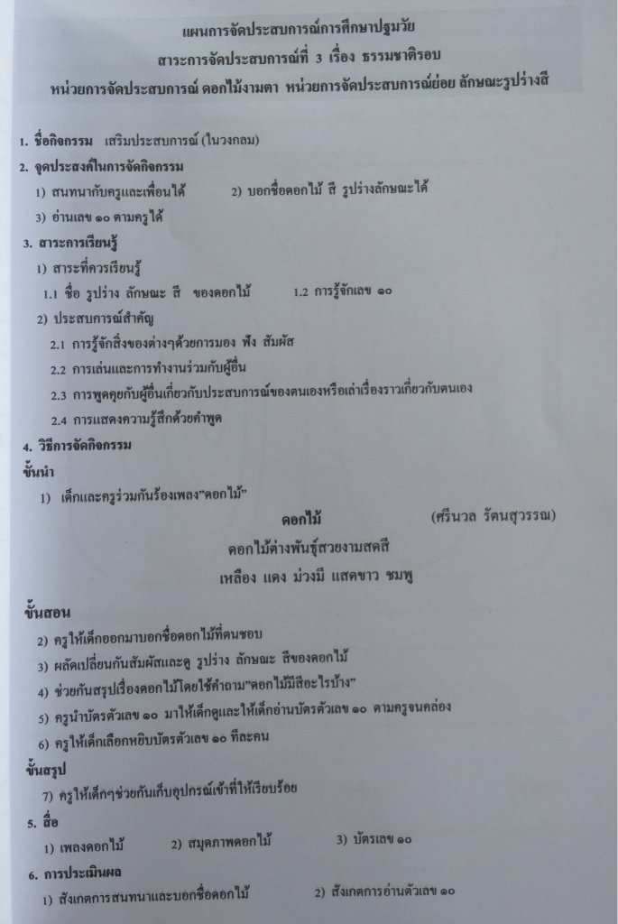 แผนการสอนหน่วยการจัดประสบการณ์ ดอกไม้งามตา กิจกรรมเสริมประสบการณ์