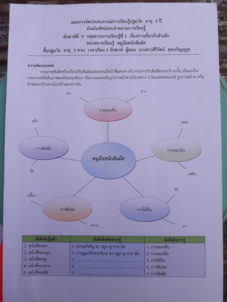 แผนผังมโนทัศน์หน่วยหนูน้อยนักสัมผัส