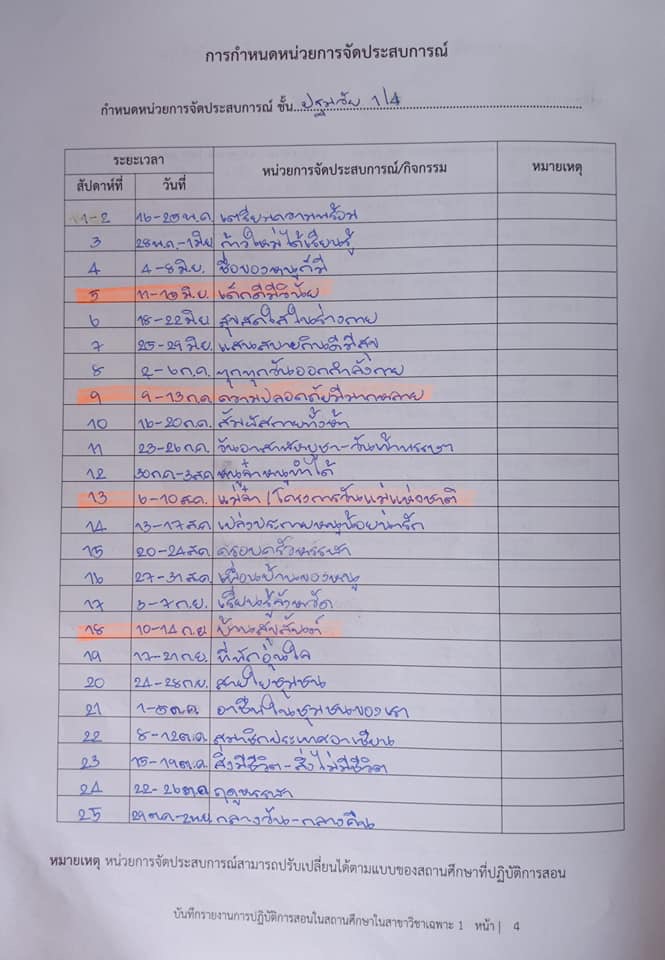 โครงสร้างหน่วยการเรียนตลอดภาคเรียน