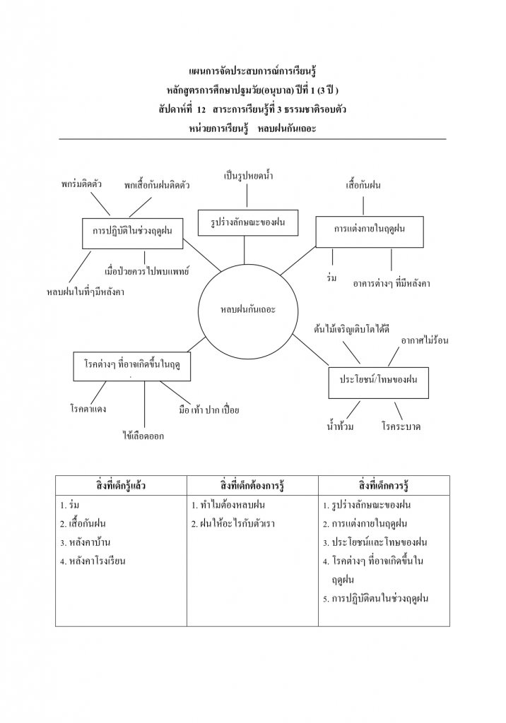 แผนผังมโนทัศน์ หน่วย หลบฝนกันเถอะ