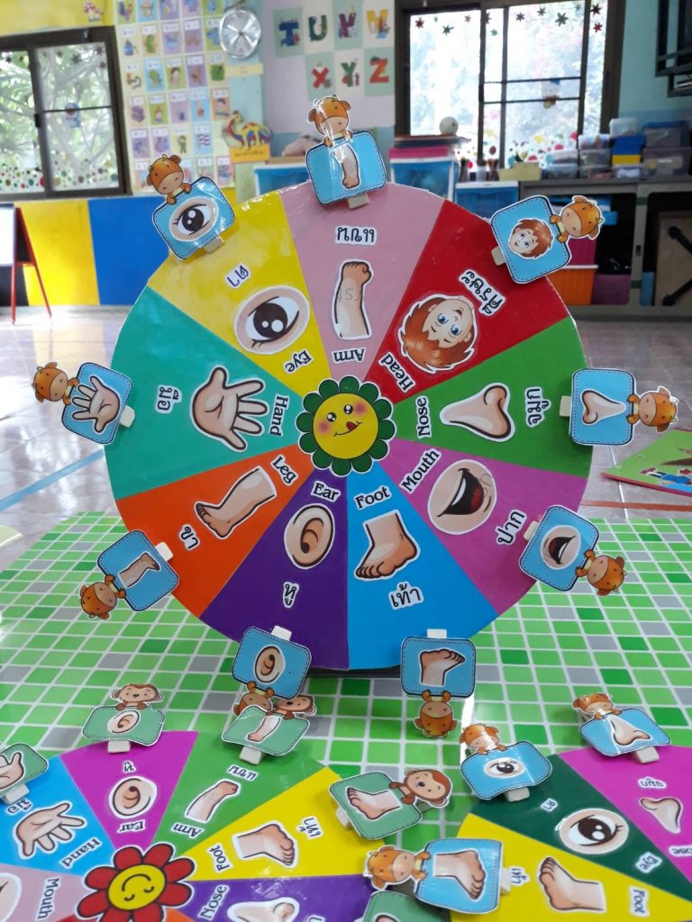 สื่อประกอบการสอน(กิจกรรมเกมการศึกษา) วงล้อจับคู่ภาพอวัยวะส่วนต่างๆร่างกาย