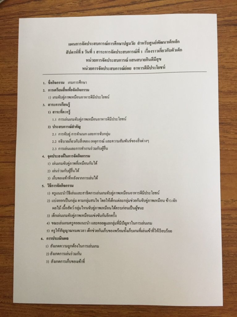 แผนการจัดประสบการณ์