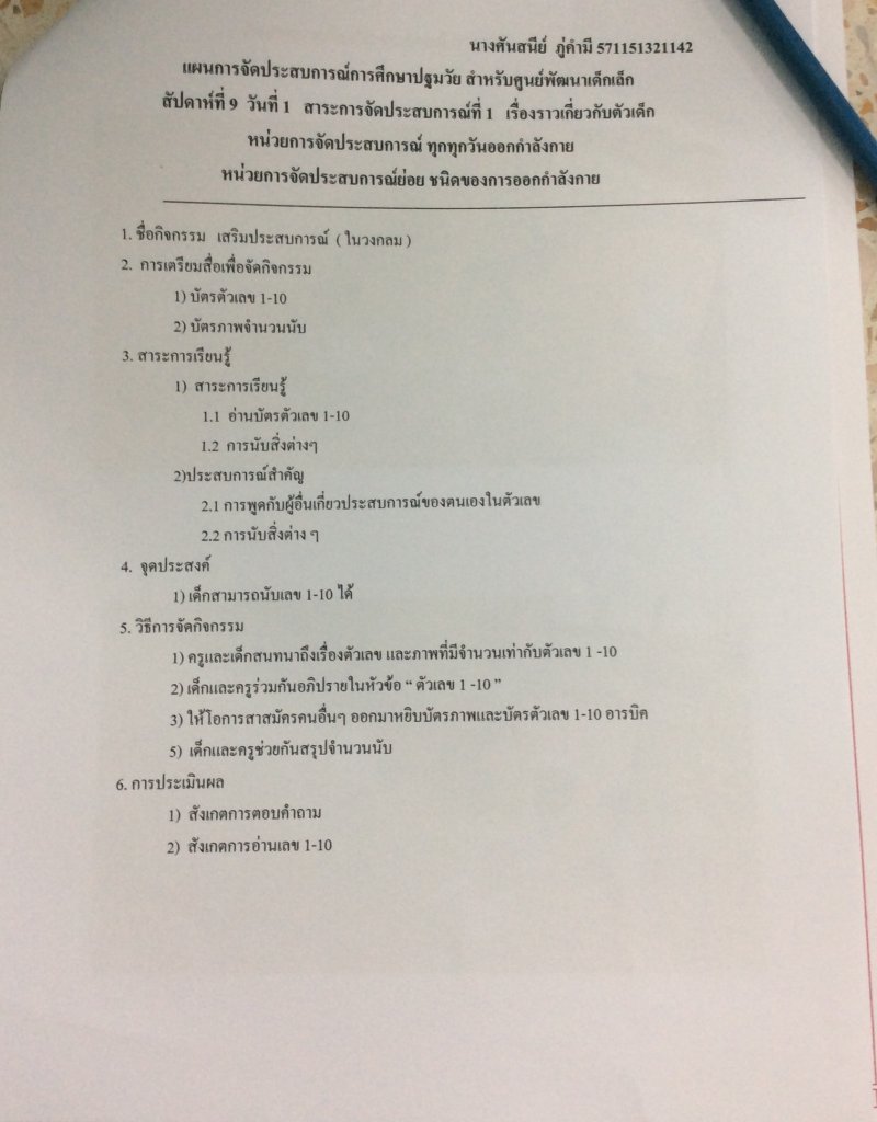 แผนการจัดประสบการณ์กิจกรรมเสริมประสบการณ์ (บัตรตัวเลข 1-10)