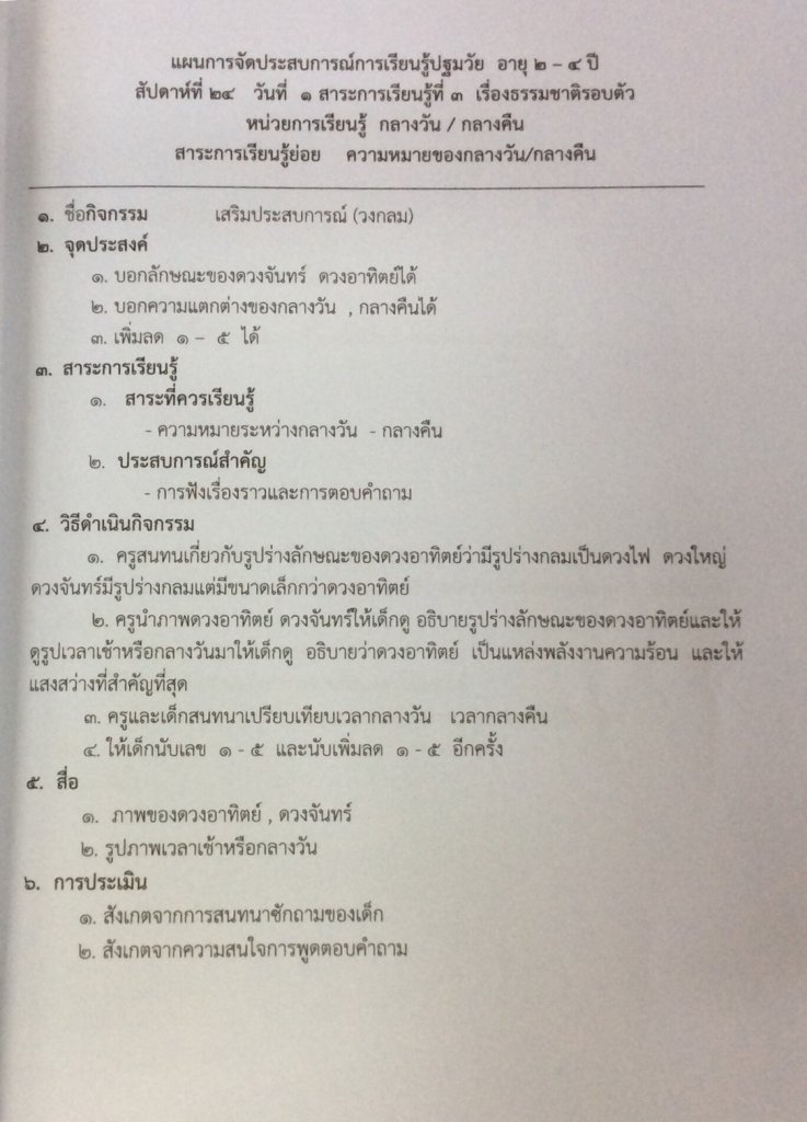 แผนการสอนกิจกรรมเสริมประสบการณ์ หน่วยกลางวัน - กลางคืน