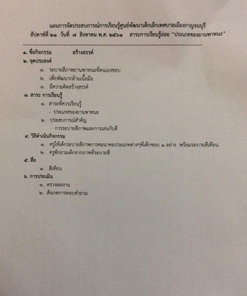 แผนการจัดประสบการณ์ หน่วยคมนาคม