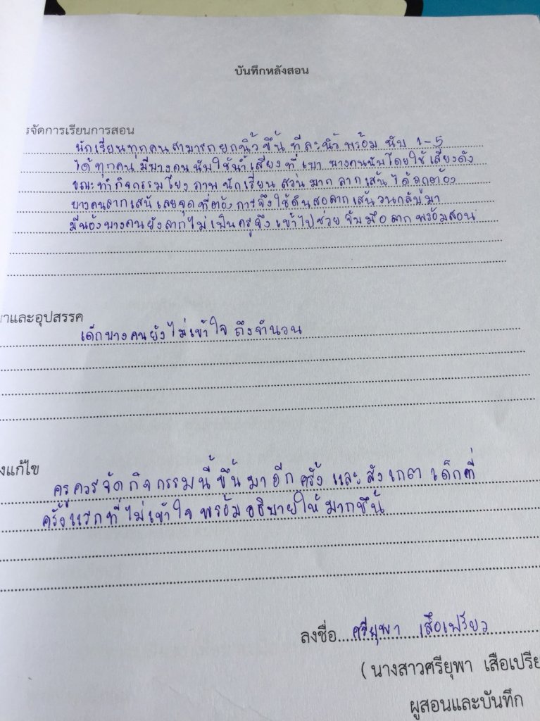 บันทึกหลังการสอน
