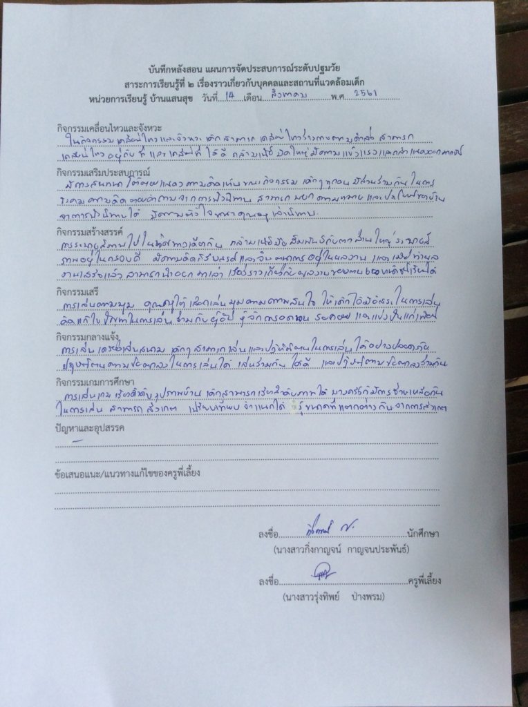 บันทึกหลังการจัดประสบการณ์หน่วยการเรียนรู้บ้านแสนสุข