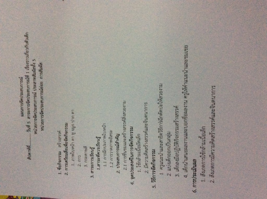 แผนการจัดประสบการณ์ กิจกรรมสร้างสรรค์