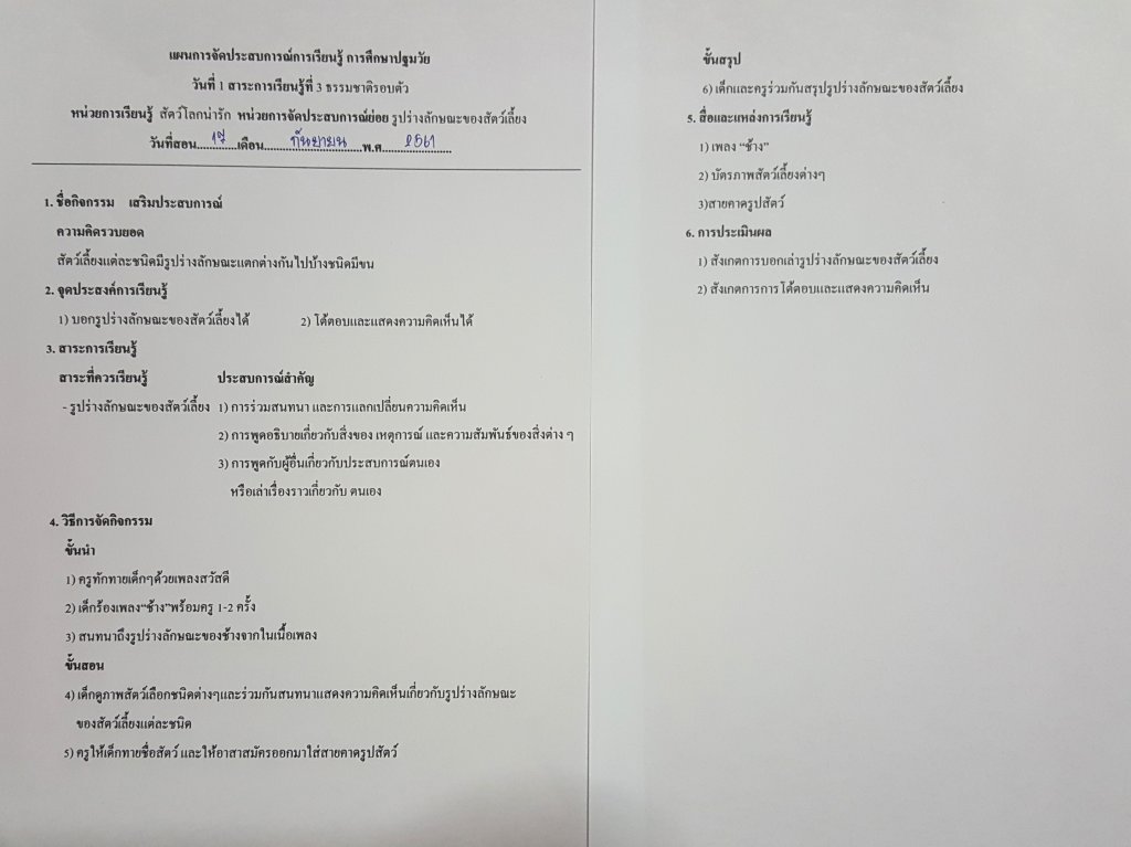 แผนการจัดประสบการณ์