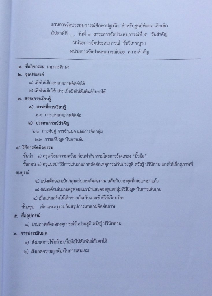 แผนการจัดประสบการณ์