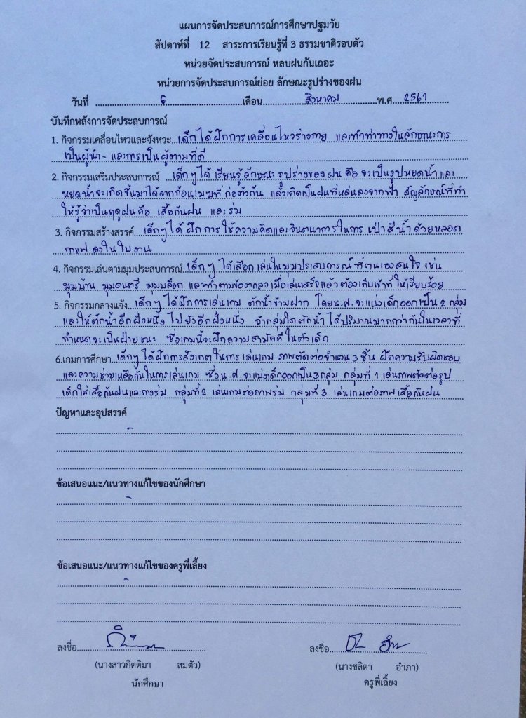 บันทึกการจัดประสบการณ์ หน่วย หลบฝนกันเถอะ