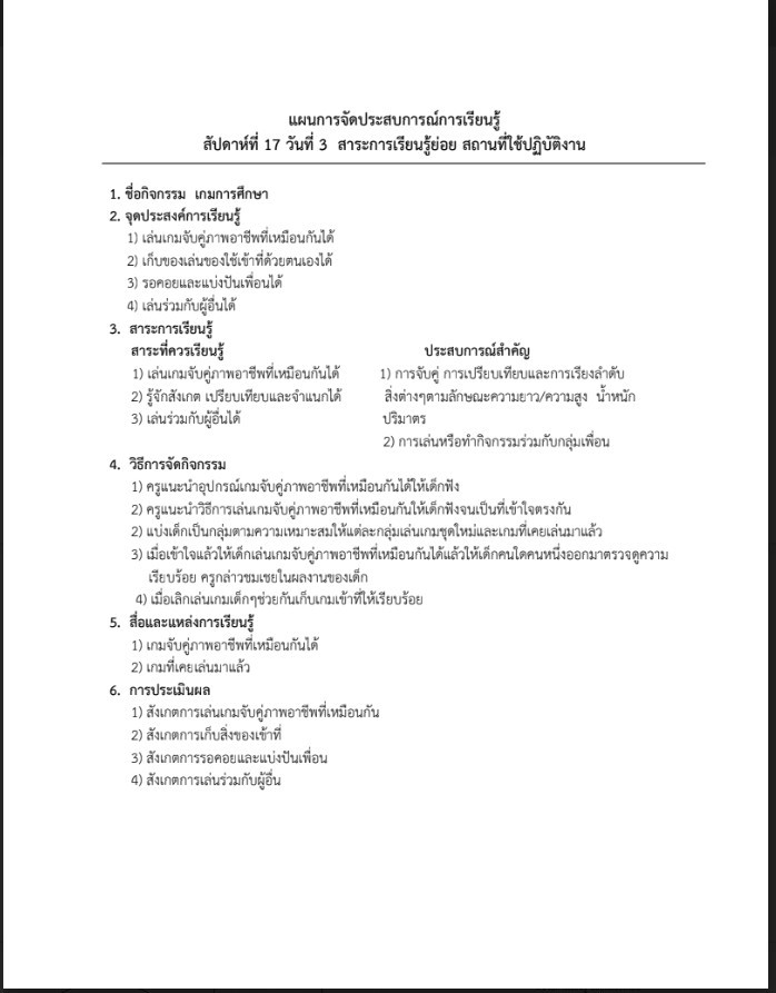 แผนการจัดประสบการณ์