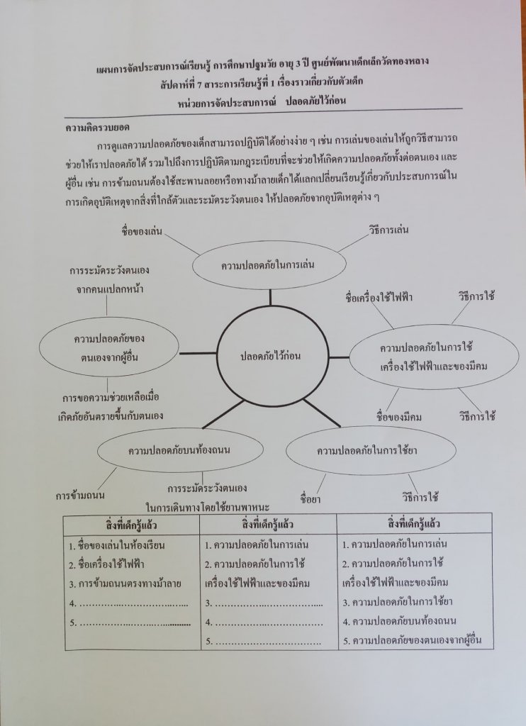 ผังมโนทัศน์ประจำหน่วยการเรียนรู้ หน่วย ปลอดภัยไว้ก่อน