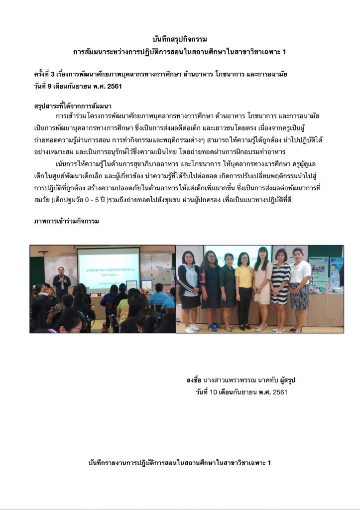 บันทึกสรุปการนิเทศการสัมมนา ครั้งที่ 3
