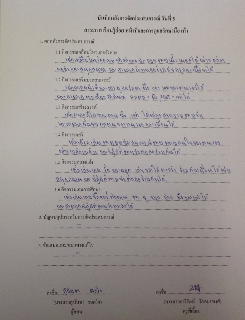 บันทึกหลังสอน กิจกรรมเสริมประสบการณ์