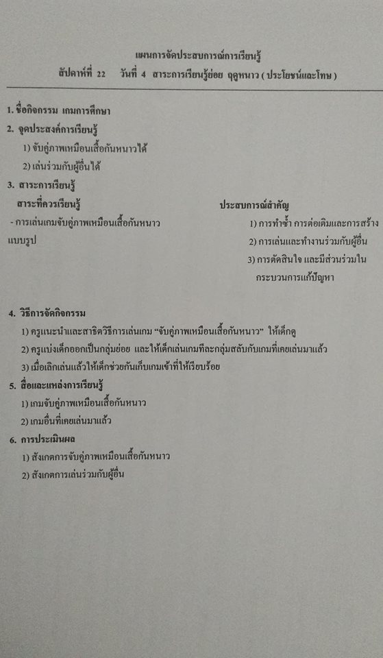 แผนกิจกรรมเกมการศึกษา