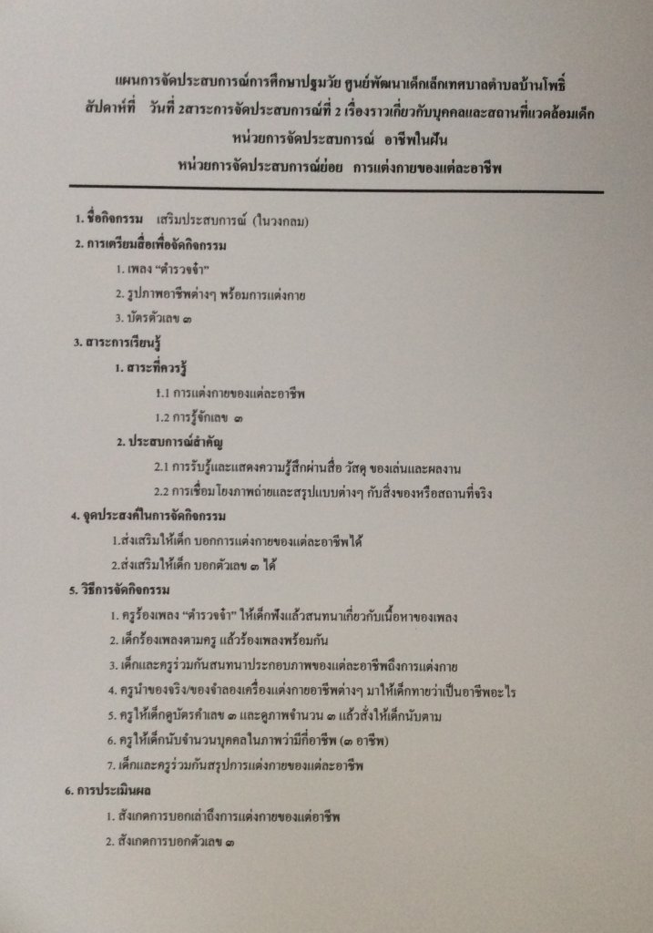 แผนการณ์จัดประสบการณ์