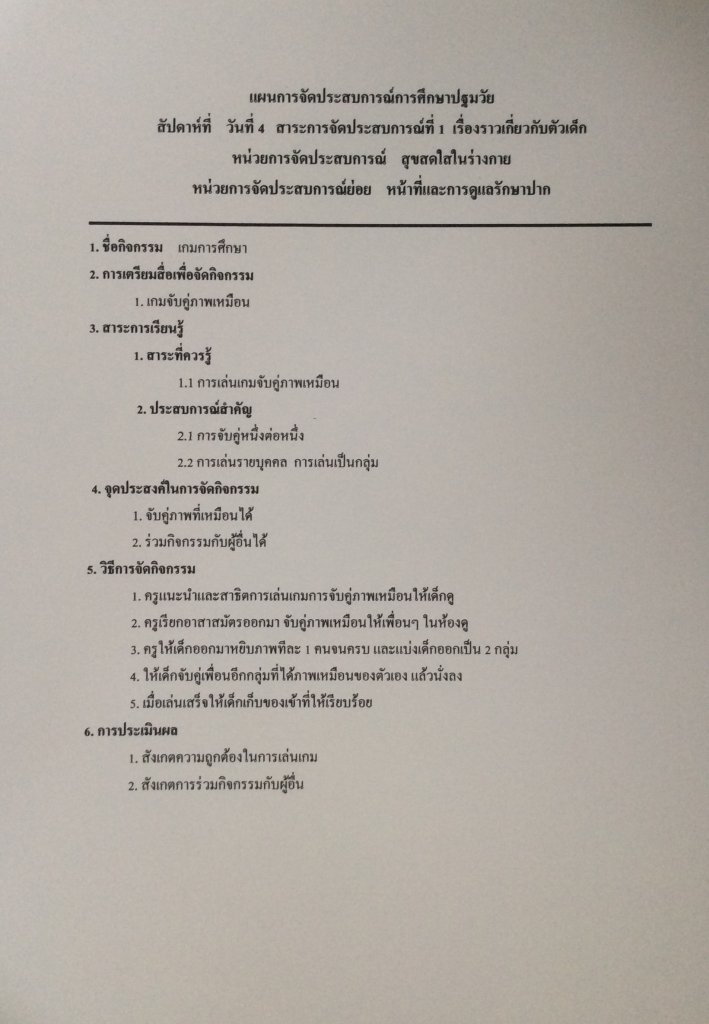 กิจกรรมเกมการศึกษา หน่วย สุขสดใสในร่างกาย