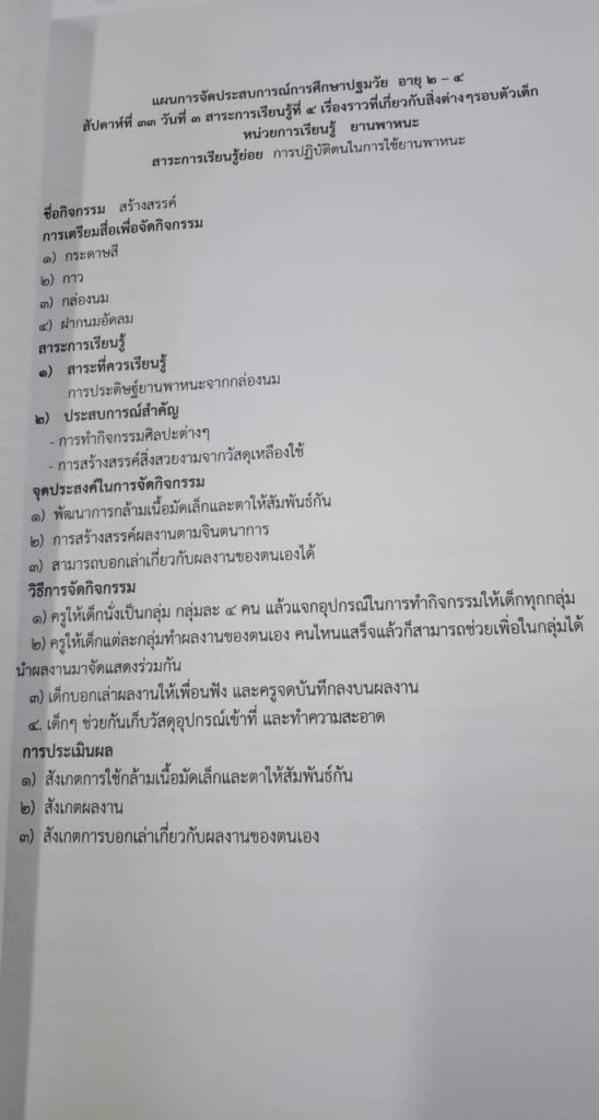 แผนการจัดประสบการณ์ หน่วยยานพาหนะ