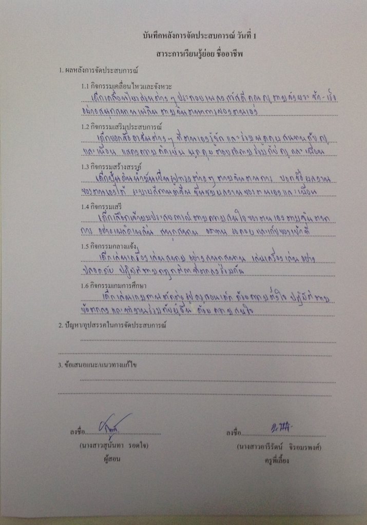 บันทึกหลังสอน กิจกรรมเสริมประสบการณ์