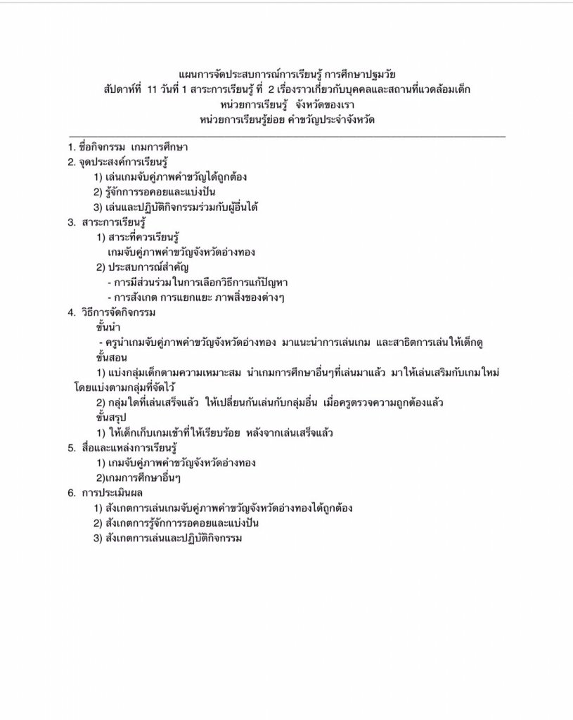 แผนการจัดประสบการณ์