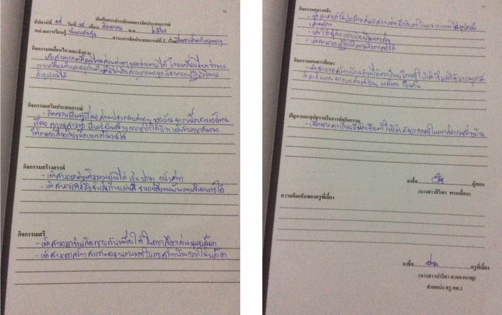 บันทึกหลังการจัดประสบการณ์