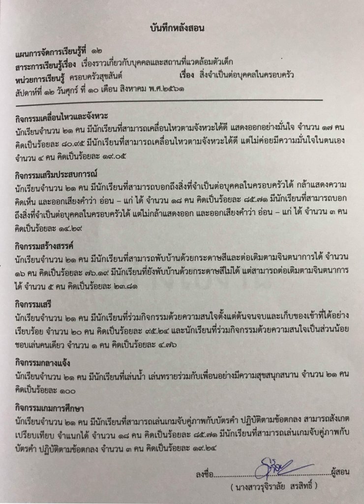 บันทึกหลังสอน กิจกรรมสร้างสรรค์