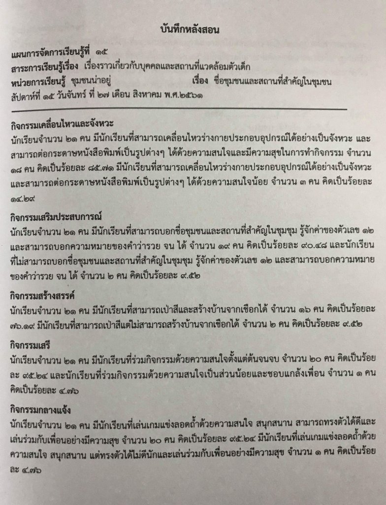 บันทึกหลังสอน1 กิจกรรมเกมการศึกษา