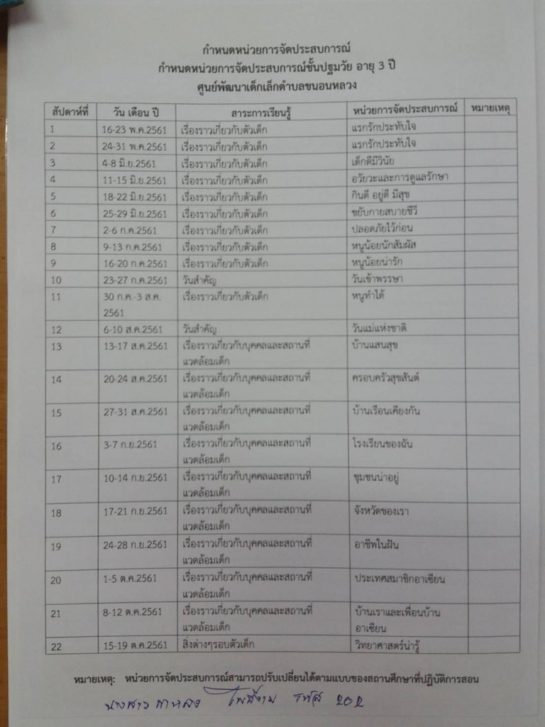 โครงสร้างหน่วยการเรียนตลอดภาคเรียน
