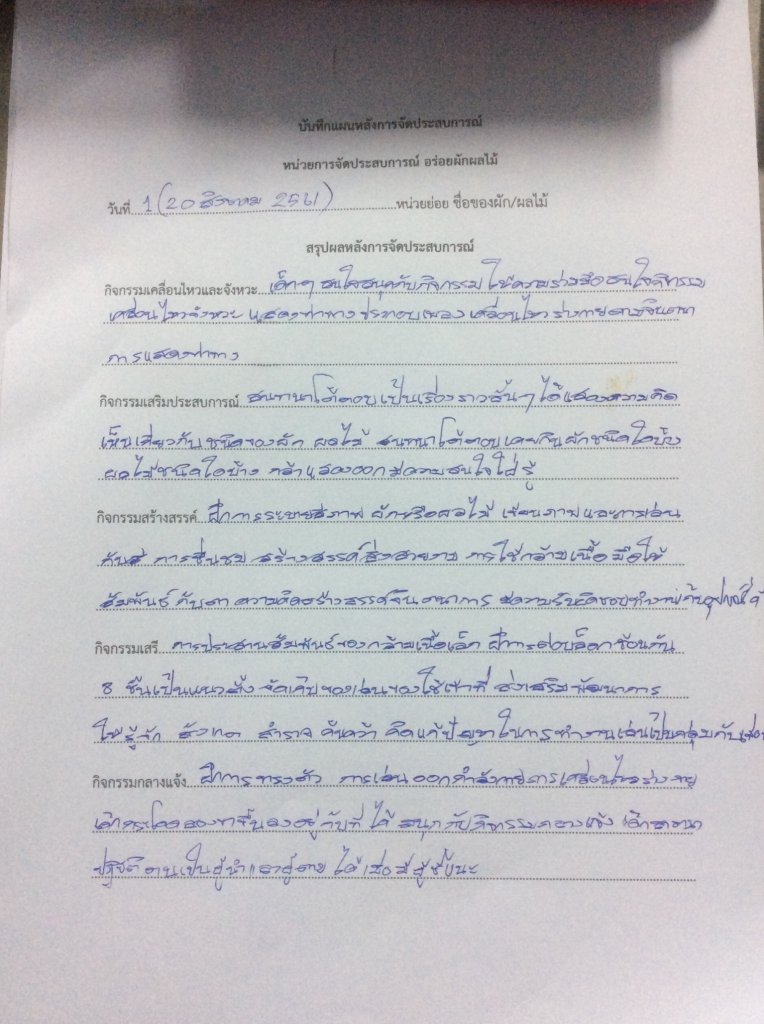 บันทึกหลักการจัดประสบการณ์