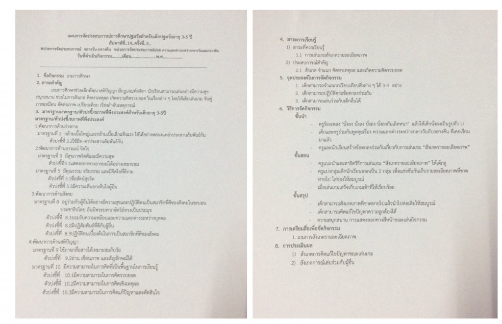 แผนกิจกรรม ( เกมการศึกษา)