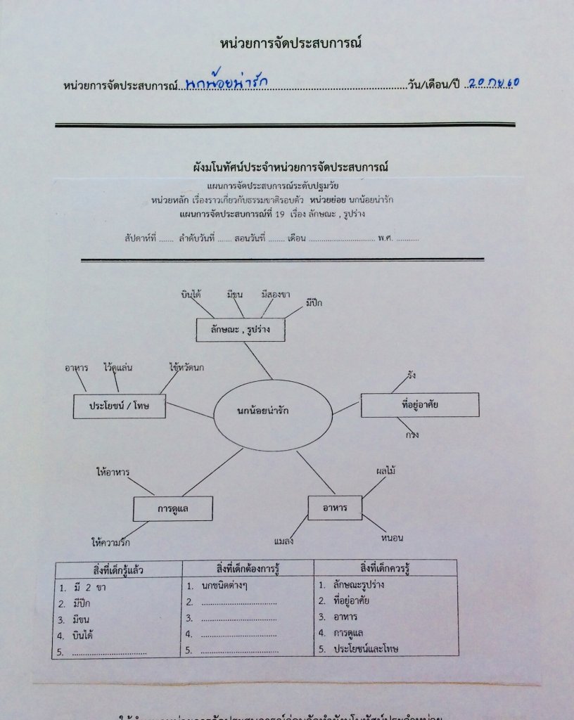 ผังมโนทัศน์หน่วยนกน้อยน่ารัก