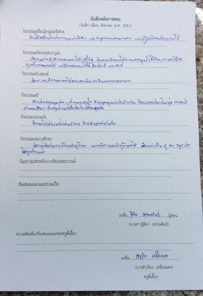 บันทึกหลังการสอน